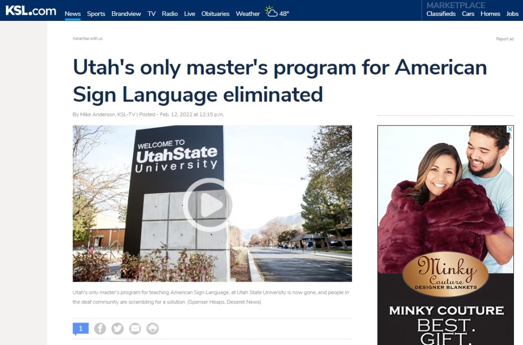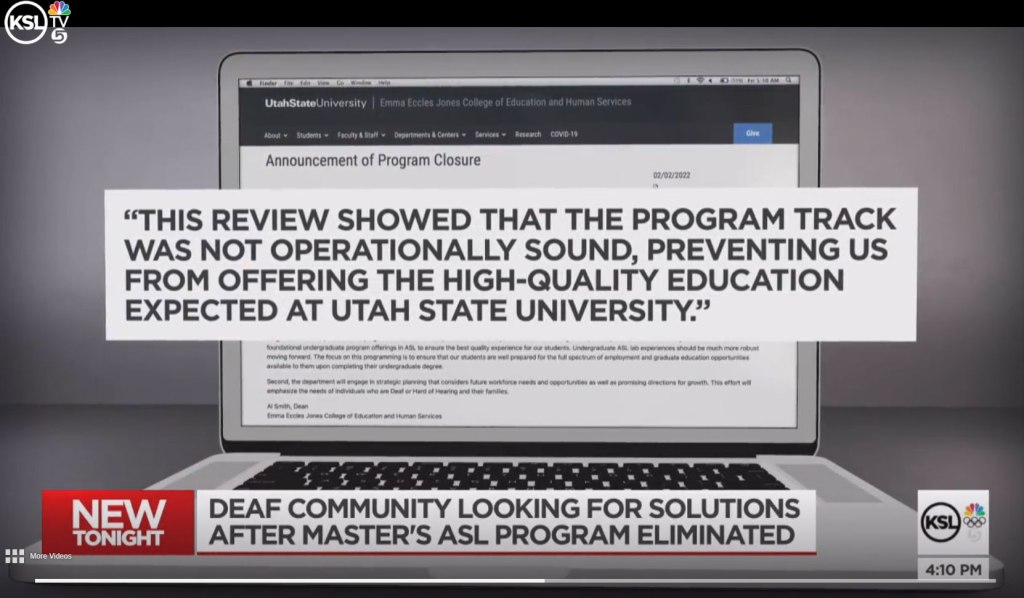 [We are] writing on behalf of the Utah Association of the Deaf (UAD) in regards to the announcement of program closure of the Bilingual- Bicultural Track of USU’s Master’s Program in Communication Disorders and Deaf Education.